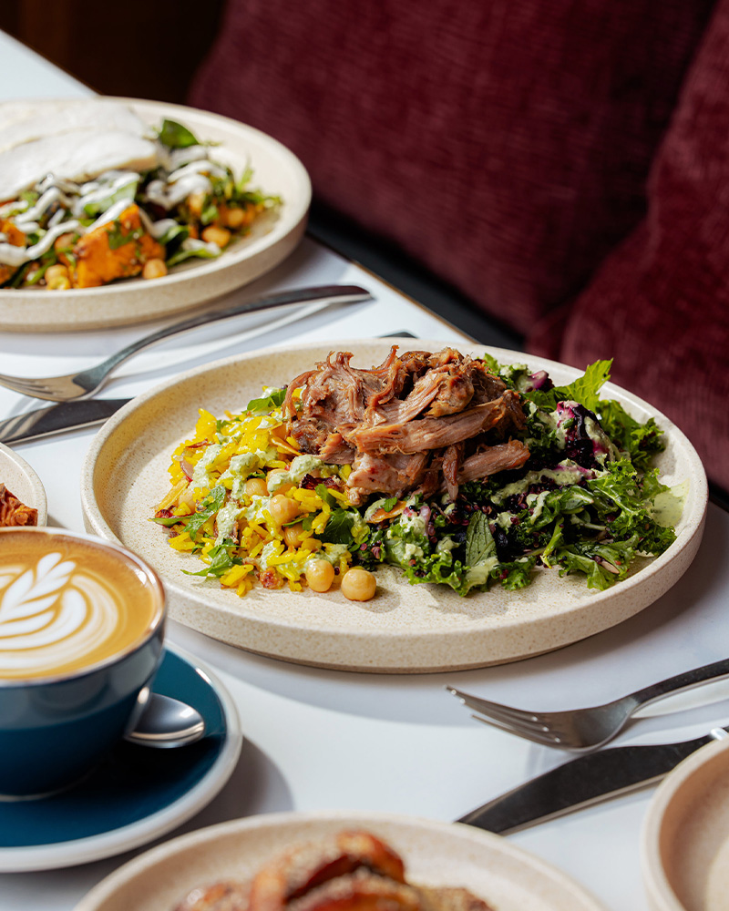 Coffee by Code Black, salads made fresh daily with a rotating mix of grains, greens and proteins, and pastries baked each morning.